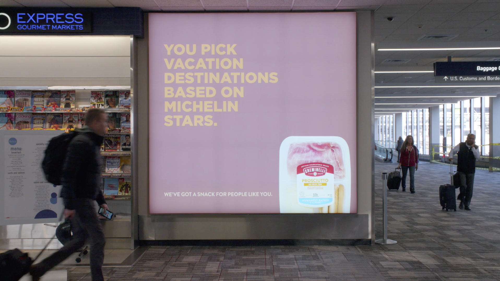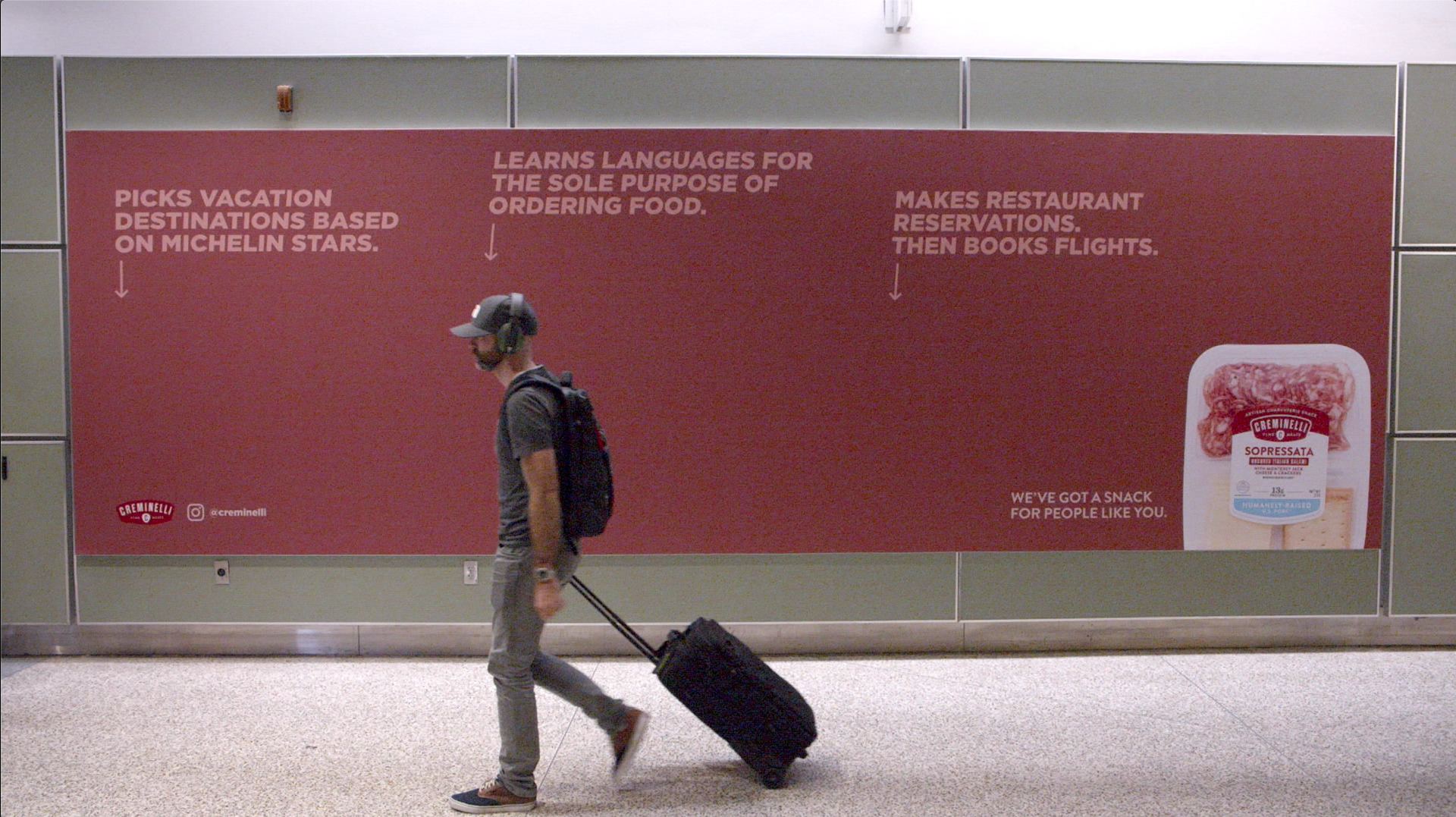 The goal was to get unapologetic foodie travelers (millennials who consider themselves more discerning than most) to make Creminelli their go-to meat snack brand. We chose to call them out on social and in the real world with a knowing wink – demonstrating that Creminelli understands them better than most.
